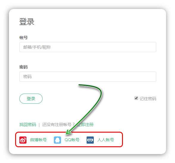 所有第三方登录的验证代码都可以复制粘贴到页面最下方!